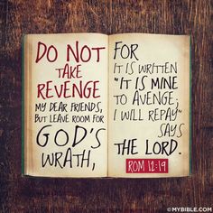 Our initial reaction is to retaliate, to defend ourselves and to take the offense. However, God’s Word to us is clear: ‘Do not take revenge’. David knew that the battle was not his to fight: Thus says the Lord to you, ‘Do not be afraid and do not be dismayed at this great horde, for the battle is not yours but God’s. (2 Chronicles 20:15) It is not for us to destroy abortion clinics or physically harm those who work there. It is not for us to seek to inflict harm against those in political office nor are we to seek vengeance against the minority factions who attack those who believe the Word of God to be Truth and seek to bring economic harm to them and remove their rights to their faith.