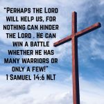 Jonathan said to the young man who carried his armor, “Come, let us go over to the garrison of these uncircumcised. It may be that the Lord will work for us, for nothing can hinder the Lord from saving by many or by few.” (1 Samuel 14:6)