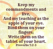 Keep my commandments and live; keep my teaching as the apple of your eye; bind them on your fingers; write them on the tablet of your heart. – Proverbs 7:2-3